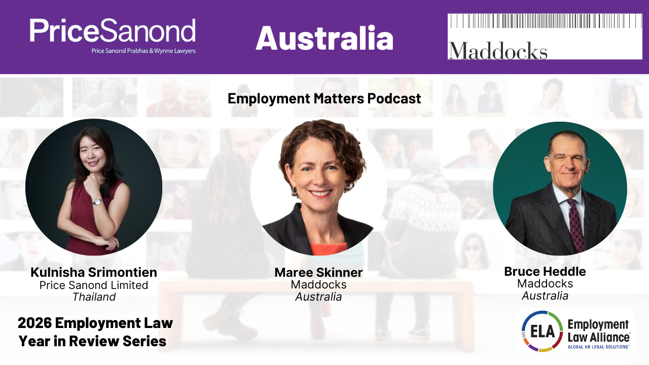 Listen in as we discuss the most impactful employment law regulations of 2025 and forecast what employers can expect in 2026. Subscribe to our podcast today to stay up to date on employment issues from law experts worldwide. Host: Kulnisha Srimontien ( email ) ( Price Sanond Limited / Thailand) Guest Speakers: Maree Skinner ( email ) & Bruce Heddle ( email ) ( Maddocks / Australia) Support the show Register on the ELA website here to receive email invitations to future programs.