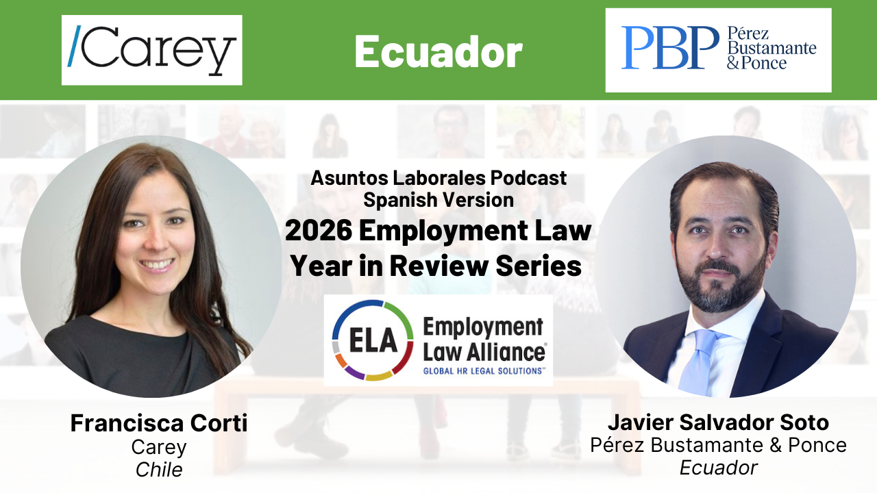 Escucha mientras analizamos los desarrollos laborales más relevantes de 2025 y hacemos un pronóstico de lo que los empleadores pueden esperar en 2026. Suscríbete a nuestro podcast hoy para mantenerte informado sobre temas laborales con expertos legales de todo el mundo. Moderadora: Francisca Corti ( email ) ( Carey / Chile) Orador invitado: Javier Salvador Soto ( email ) ( Pérez Bustamante & Ponce / Ecuador)