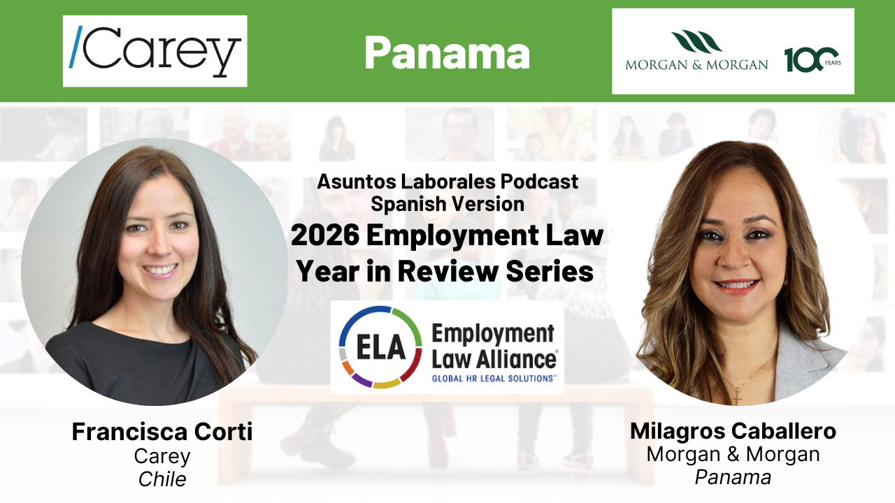 Escucha mientras analizamos los desarrollos laborales más relevantes de 2025 y hacemos un pronóstico de lo que los empleadores pueden esperar en 2026. Suscríbete a nuestro podcast hoy para mantenerte informado sobre temas laborales con expertos legales de todo el mundo. Moderadora: Francisca Corti ( email ) ( Carey / Chile) Oradora invitada: Milagros Caballero ( email ) ( Morgan & Morgan / Panama)