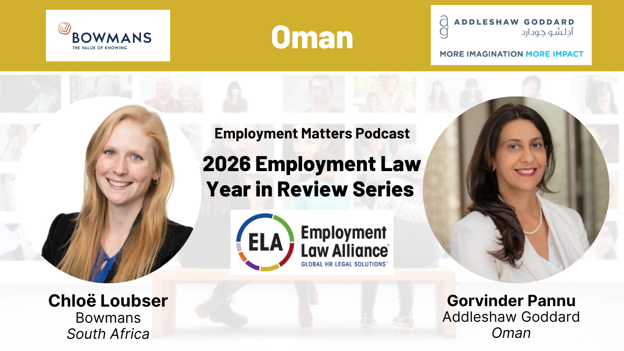 Listen in as we discuss the most impactful employment law regulations of 2025 and forecast what employers can expect in 2026. Subscribe to our podcast today to stay up to date on employment issues from law experts worldwide. Host: Chloë Loubser ( email ) ( Bowmans / South Africa) Guest Speaker: Gorvinder Pannu ( email ) ( Addleshaw Goddard / Oman) Support the show Register on the ELA website here to receive email invitations to future programs.