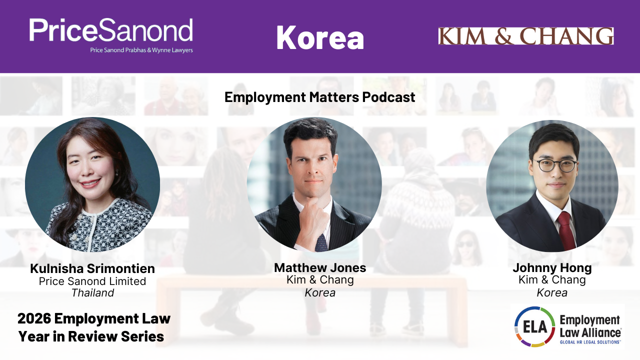 Listen in as we discuss the most impactful employment law regulations of 2025 and forecast what employers can expect in 2026. Subscribe to our podcast today to stay up to date on employment issues from law experts worldwide. Host: Kulnisha Srimontien ( email ) ( Price Sanond Limited / Thailand) Guest Speakers: Matthew Jones ( email ) & Johnny Hong ( email ) ( Kim & Chang / Korea) Support the show Register on the ELA website here to receive email invitations to future programs.