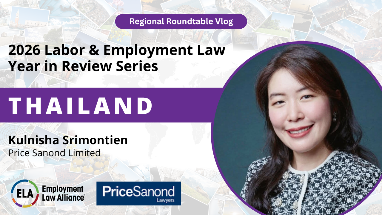 93: Speaker: Kulnisha Srimontien ( Price Sanond Limited / Thailand) kulnisha@pricesanond.com Join ELA thought leaders as they address the most impactful labor and employment changes of 2025 and anticipated developments in 2026. Learn more and register for these complimentary webinars, podcasts, and vlogs: https://webinars.ela.law/2026-year-in...