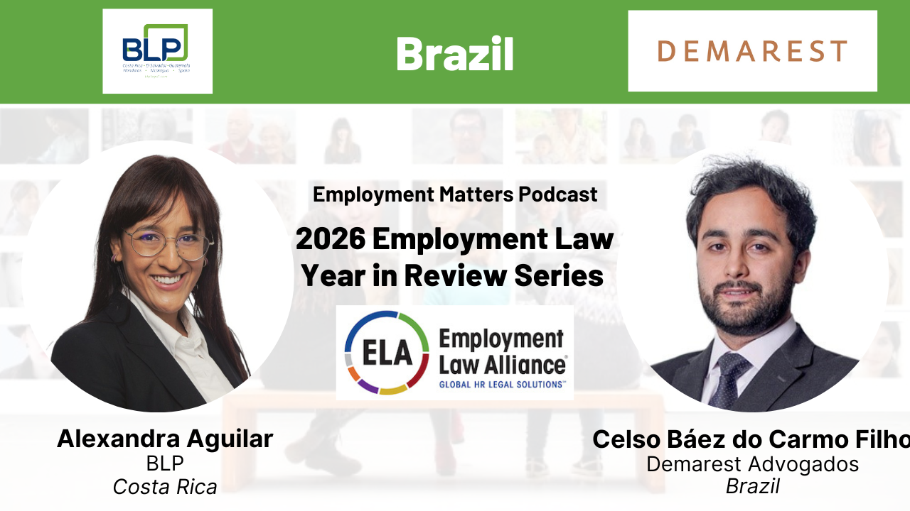 Listen in as we discuss the most impactful employment law regulations of 2025 and forecast what employers can expect in 2026. Subscribe to our podcast today to stay up to date on employment issues from law experts worldwide. Host: Alexandra Aguilar Garcia ( email ) ( BLP / Costa Rica) Guest Speaker: Celso Báez do Carmo Filho ( email ) ( Demarest Advogados / Brazil) Support the show Register on the ELA website here to receive email invitations to future programs.