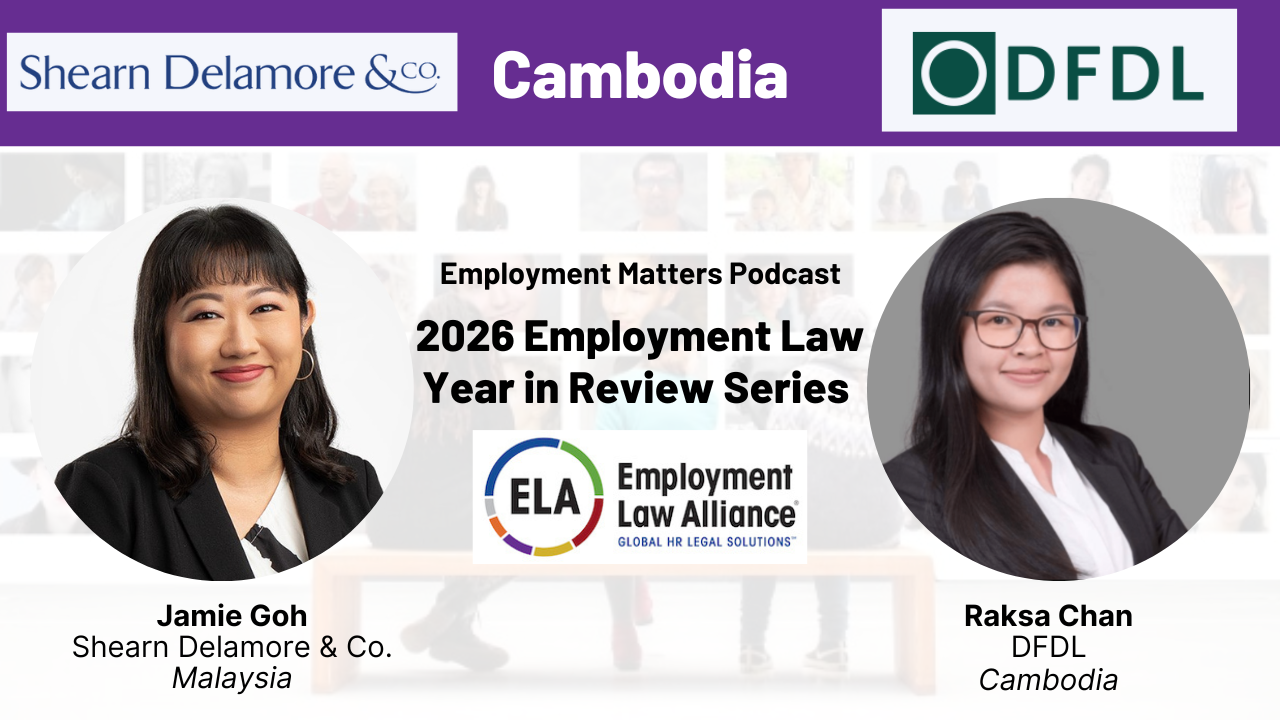 Listen in as we discuss the most impactful employment law regulations of 2025 and forecast what employers can expect in 2026. Subscribe to our podcast today to stay up to date on employment issues from law experts worldwide. Host: Jamie Goh ( email ) ( Shearn Delamore & Co. / Malaysia) Guest Speaker: Raksa Chan ( email ) ( DFDL / Cambodia) Support the show Register on the ELA website here to receive email invitations to future programs.